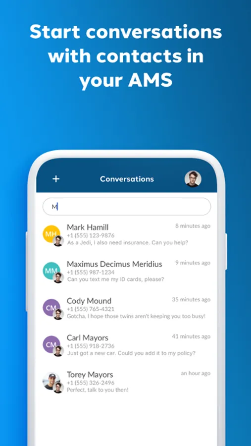 Start new conversations, continue existing ones and receive notifications when new messages arrive.
