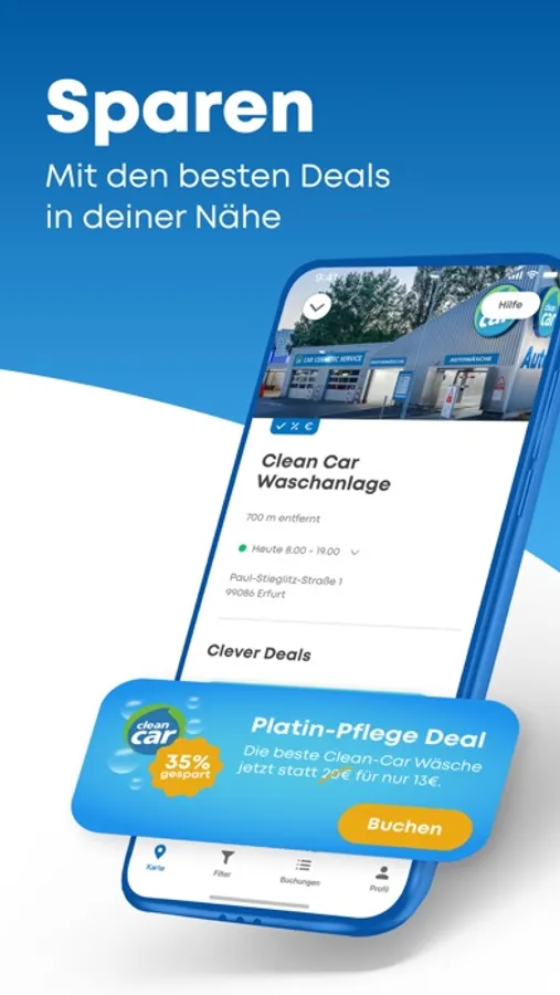- Mehr als 10.000 Waschanlagen in einer App - Alle Öffnungszeiten, Preise, individuelle Angebote und Spezialwäschen - Top-Deals und Schnäppchen im Deal-Finder - Mehrere Autos über einen Clever Waschen-Account registrierbar - Unbegrenzt viele Wäschen im Voraus buchbar