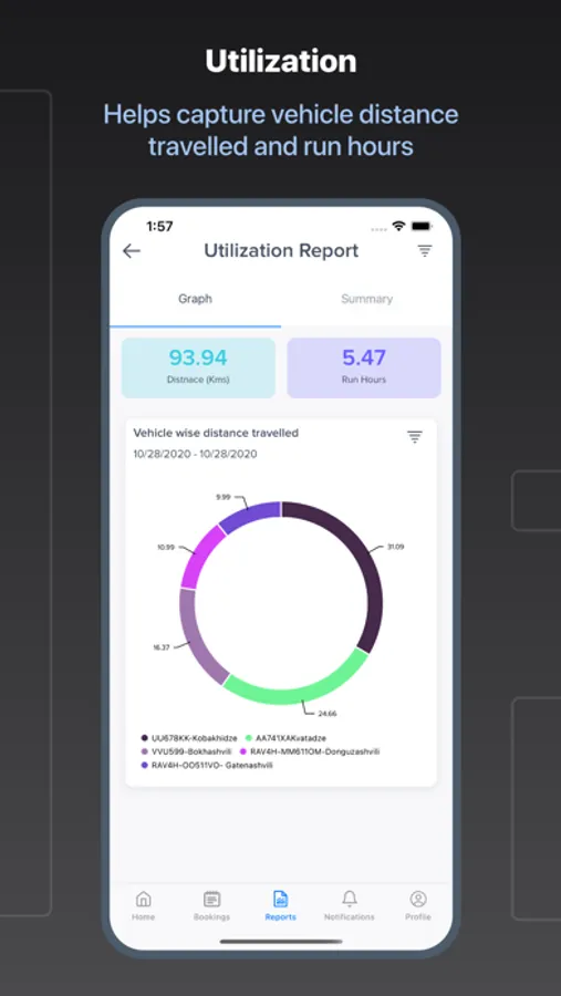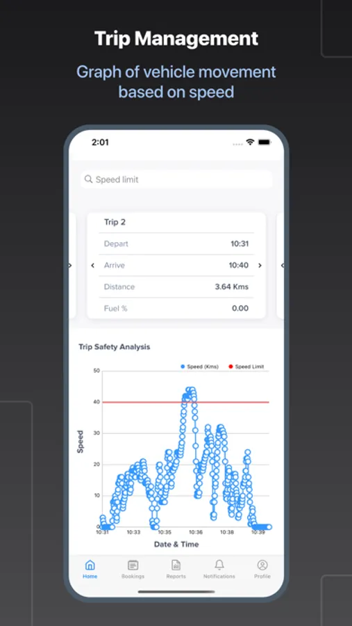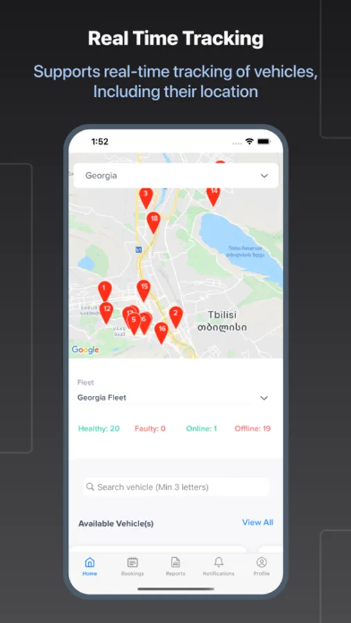 • Trip management: Supports real-time tracking of vehicles, including their location, number of trips, and details (i.e. distance, time and route).