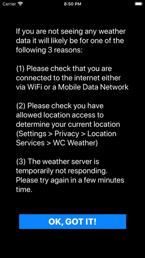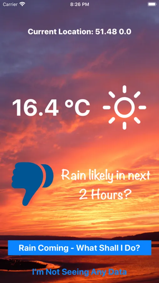 The best weather App is the one you don't even have to think about. Let the App do all the work. Let the App tell you if it's going to rain, let the App tell you if if you should continue working or just go home. This App takes all the pressure away of what you should do - using funny and cheeky messages to encourage you!