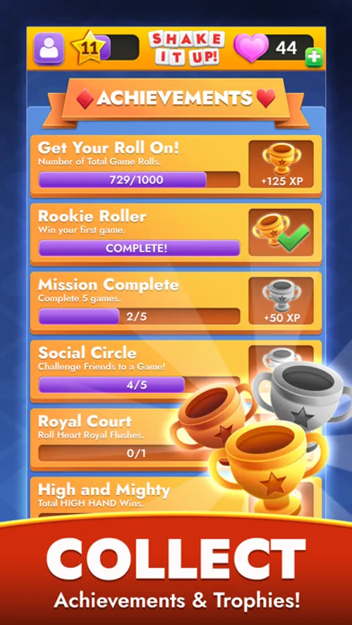 - Collect achievements,trophies, and experience points as you work toward new rewards