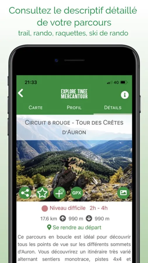 Explore Tinée Mercantour is the application that you need to plan your trails and trips. Various hike, trail, ski touring and snowshoes itineraries are listed in it. With this application get all the itineraries on your smart phone.