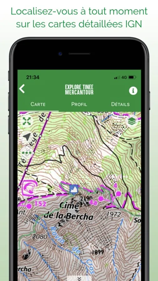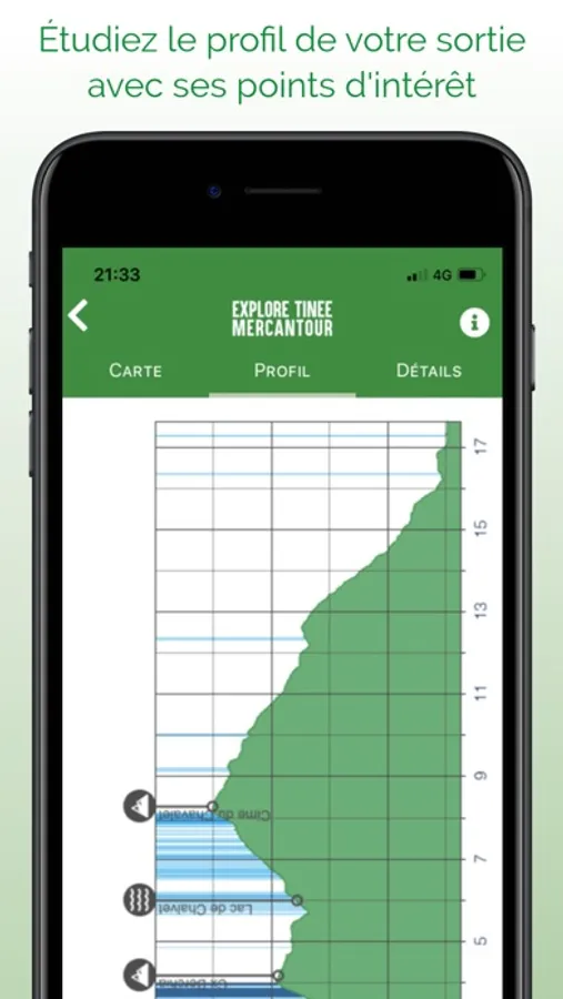 • Position at any moment on the map and the profile thanks to your smartphone GPS system