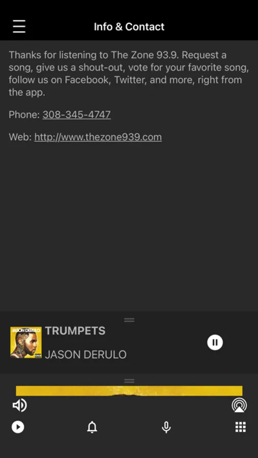 The Zone 93-9 is your online connection to Today's Hit music from the Biggest names. Download our app and start listening to The Zone 93-9 today. Tune in and listen all day, no matter where you are. Check out our App Features: Live Feed, Album artwork and song information of what's currently playing, Album artwork on the lock screen and Playlist History for the current song that's playing. Connect with the stations by sending us a shout out or check out our Facebook and Twitter Feeds, Share with your friends and more. Download the app and start listening. Enjoy!