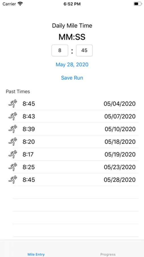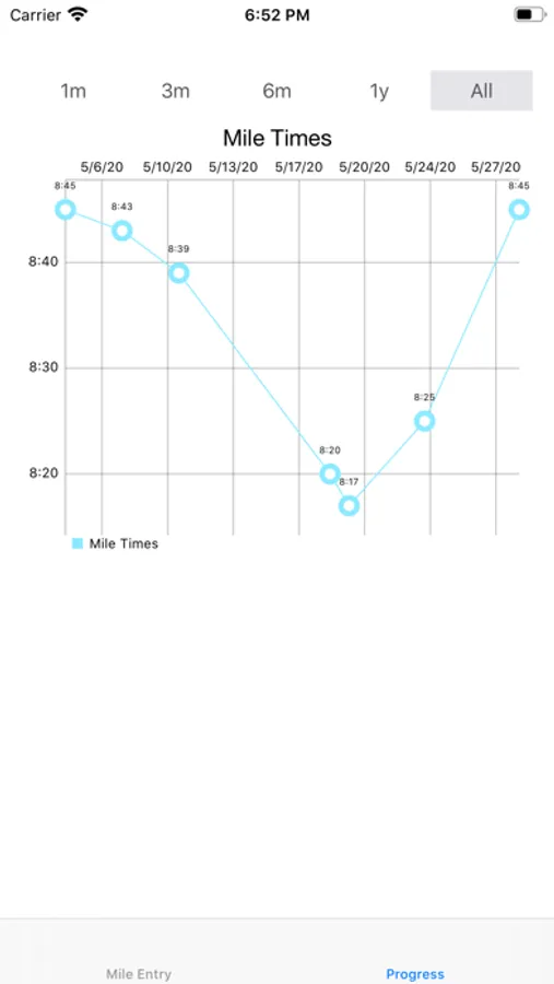 Track daily mile times and reach your goals! View your mile time progress over time!