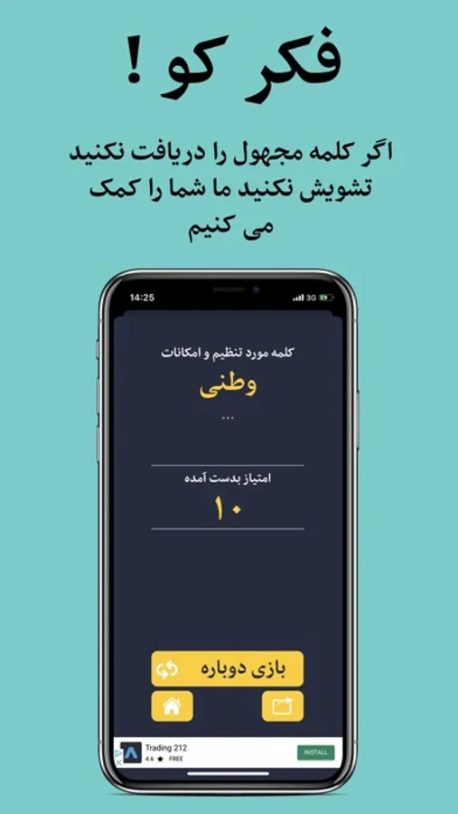 فکر کو و کلمهٔ مجهول را دریافت کنید،هیچان این بازی شما را معتاد به این بازی خواهد ساخت، پس احتیاط کنید.