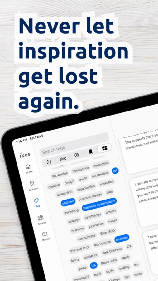 - Explore: With Ikes, you can easily explore your ideas and thoughts by adding source & tags, or searching through your notes.