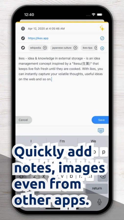 Ikes is not just any ordinary note app - it's a specialized tool for capturing and managing your ideas and inspirations. Additionally, whether it's a brilliant thought, a motivational quote, or something you found on social media, ebooks, or blogs, Ikes is here to help you keep track of it all.