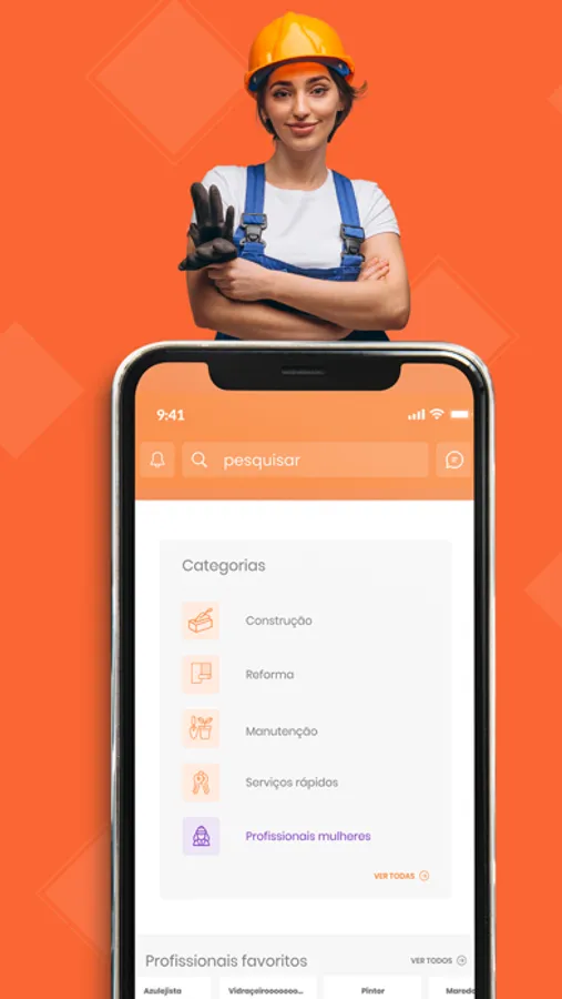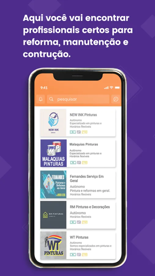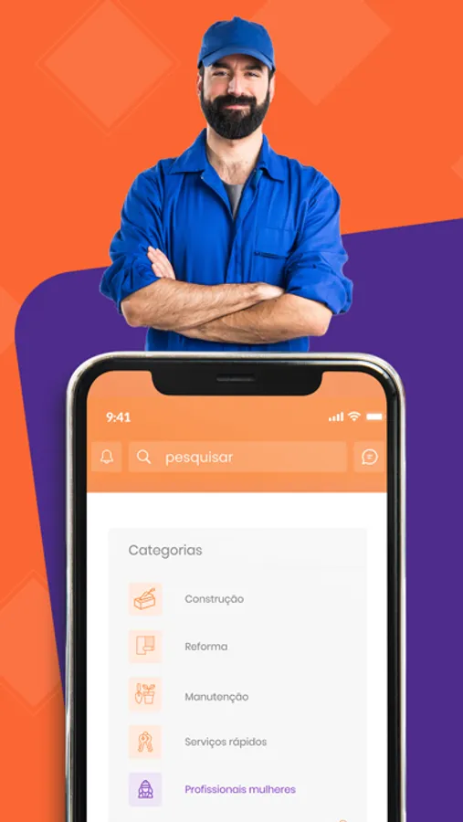 Terá em suas mãos um aplicativo facilitador na hora que precisar de um profissional qualificado, seja em sua obra, reforma, acabamento, manutenção entre outros.