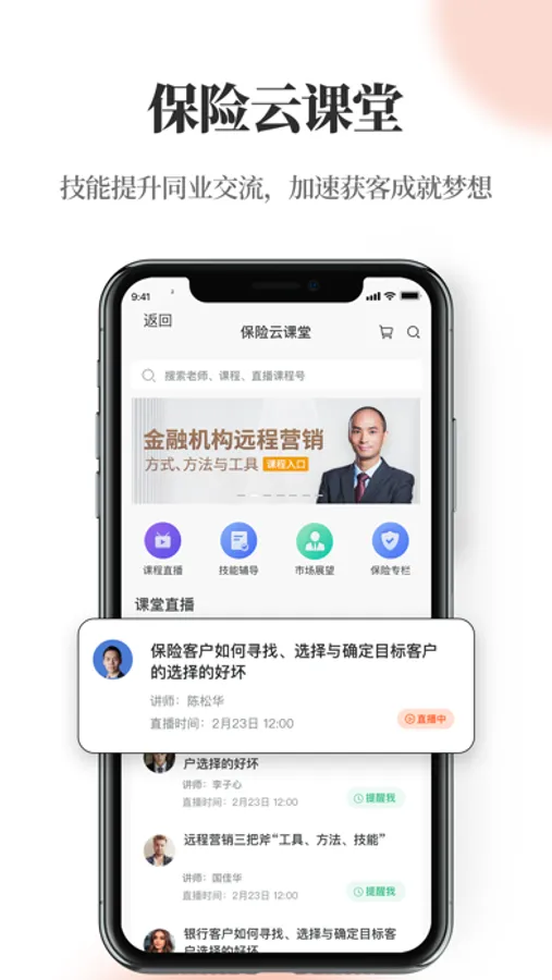 【保险云课堂】:海量课程教学、产品路演、大咖讲师剖析保险产品,传授沟通技巧,沟通更高效