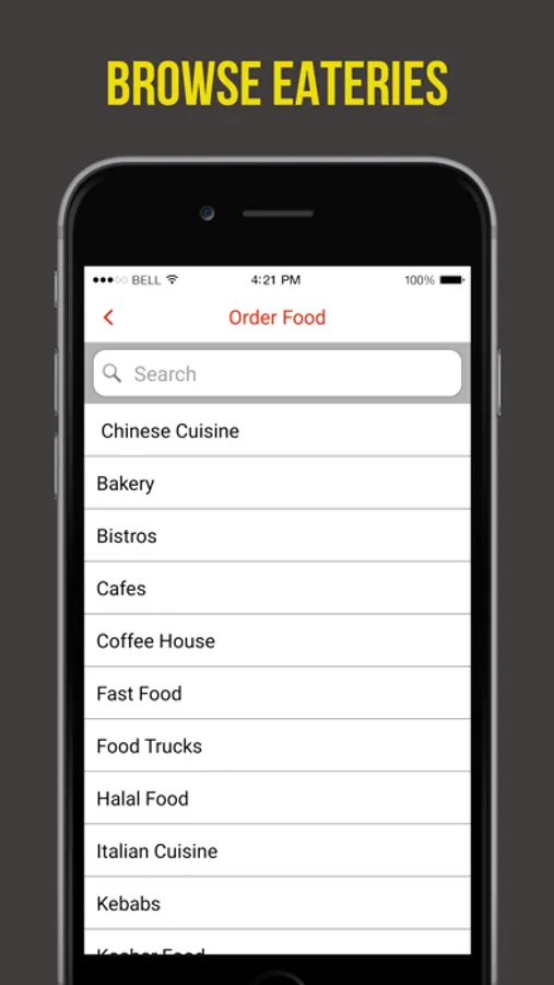 • Browse eateries and order food for takeaway or delivery by eatery type or cuisine