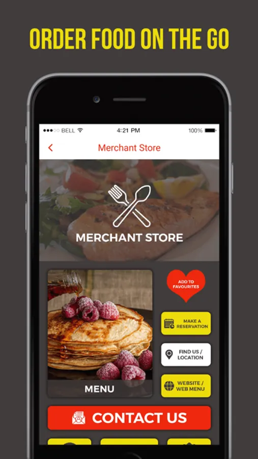 • Tap the “Order Food” or “Make a Reservation” button and browse eateries own apps