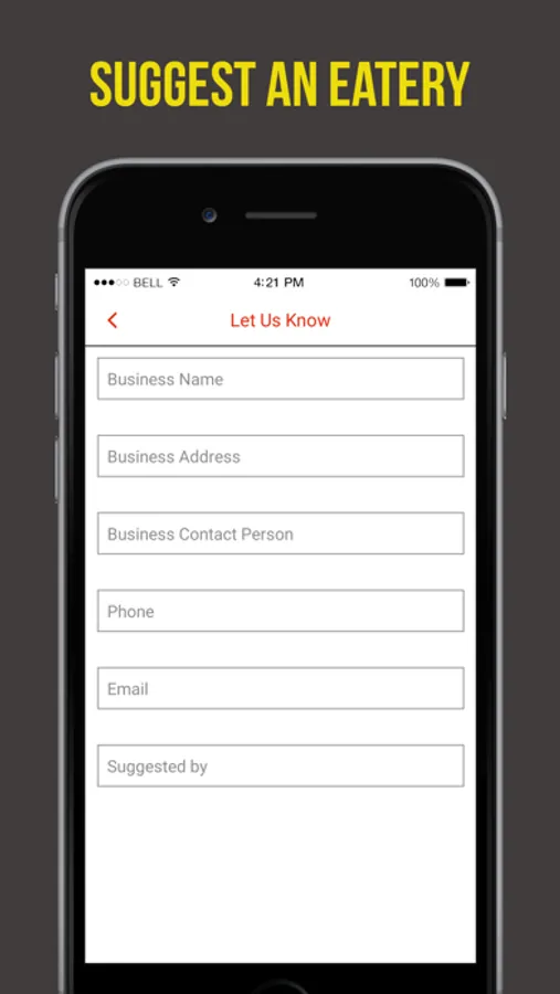 • Nominate an eatery not yet on the app, use the “Let Us Know” option and we will contact them