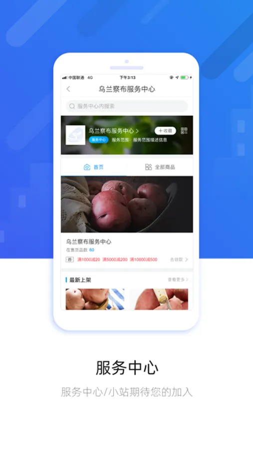 电商——手机端商城,您可以通过它收售马铃薯种薯、商品薯、农资产品、农机产品、原料、农药等等,进行线上交易,并解决货物及运输问题。