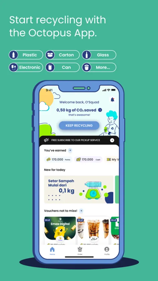 Octopus adalah platform yang memudahkan kamu mendaur ulang sampah non organik. Kami akan membantu kamu mendistribusikan sampah untuk didaur ulang dan sekaligus memberikan kebaikan kepada Pelestari di sekitar kamu.