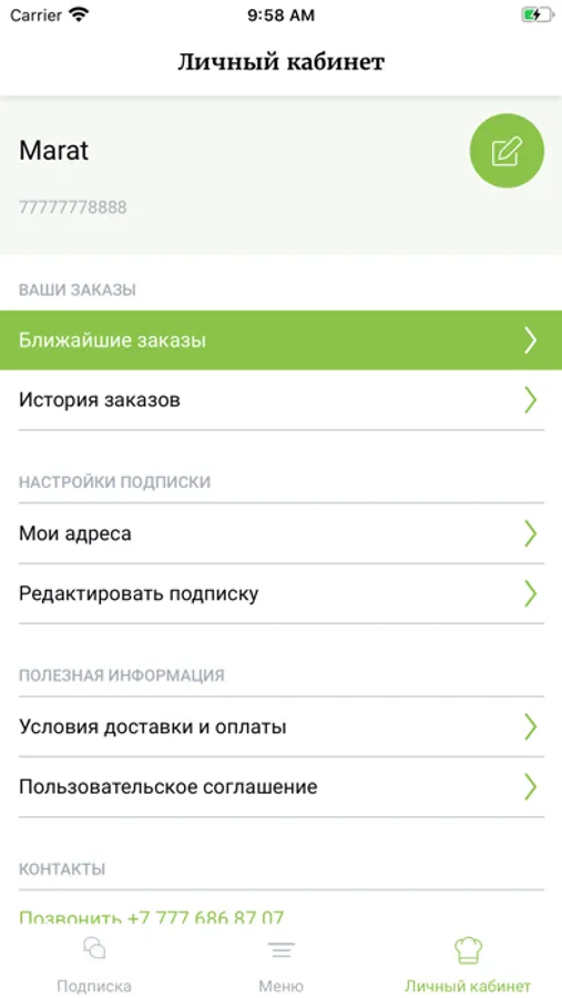Мобильное приложение СуШЕФ - доставка продуктов с рецептами для собственного приготовления блюд.