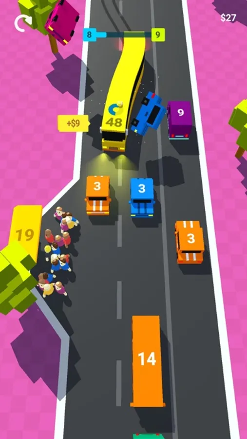 Swipe your finger to guide a bus collect passengers and hit some cars, but be careful.