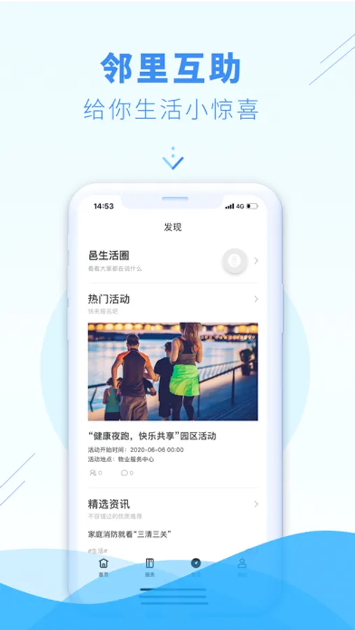 【和谐邻里】享受丰富的邻里互动,如组局活动、畅所欲言、园区互助等。