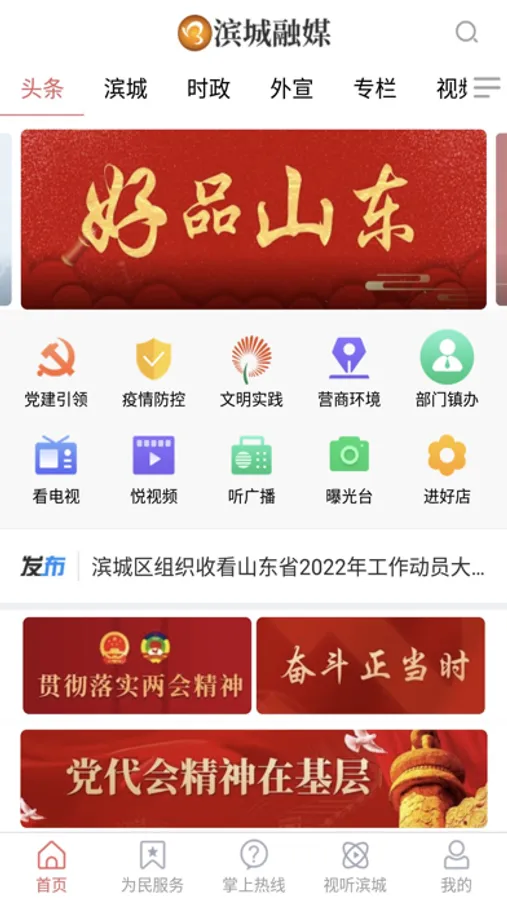 “滨城融媒”手机客户端是滨城区融媒体中心主办, 滨城区官方最具权威性的移动政务融媒体平台。滨城融媒手机客户端集新闻发布、政务服务、网络问政、社会民生、广播、电视直播、点播、互动、头条资讯等多功能为一体,可为用户带来诸多本地新闻,可提供海量省市新闻,浏览国内、国际等热点新闻。 是滨城区委区政府对外宣传的重要网络阵地;更是一款专为滨城群众打造的融媒体应用手机客户端。