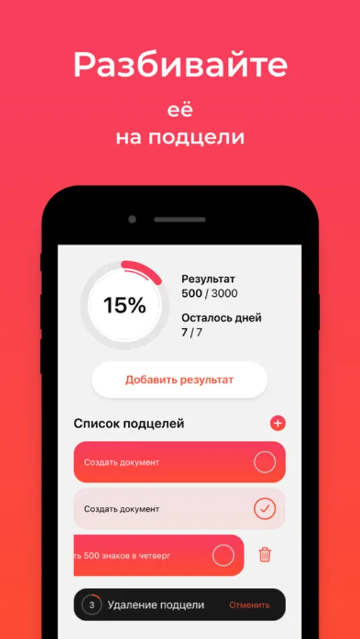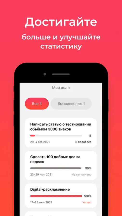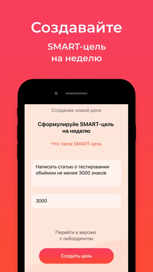 With the Week to Succeed app you can create a SMART-goal for a week, supplement it with sub-goals and track your daily progress by using different tools. Enhance your efficiency with the SMART method and move to greater heights!