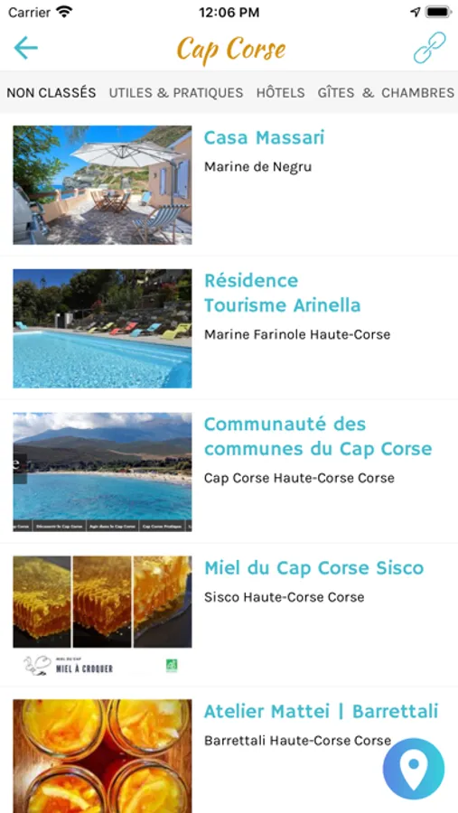 Plate-forme touristique pour l'organisation des vacances en Corse.Outil dédié au tourisme en Corse, proposant de nombreuses rubriques pour trouver un mode d'hébergement en Corse. Proposition sur place et à l'endroit de votre séjour en Corse pour trouver une activité, un restaurant, un lieu à visiter. Ludique et intuitif, chaque voyageur peut participer en envoyant ses photos de voyages, en déposant un commentaire sur un lieu visité.