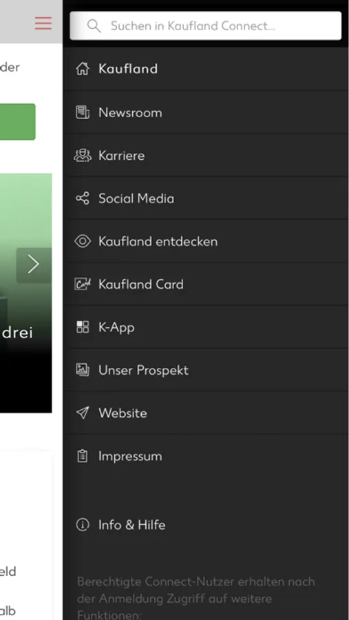 Mitarbeiterinnen und Mitarbeiter haben nach der Anmeldung weitere unternehmensinterne Informationen und Services aus der Kaufland-Welt direkt auf ihrem Smartphone.