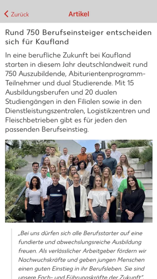 Kaufland Connect ist unsere App für alle, die aktuelle Informationen rund um Kaufland suchen. Ob News aus dem Unternehmen, Kaufland als vielfältiger Arbeitgeber oder alle Standorte des Unternehmens im Überblick: Hier finden Interessierte alles an einem Ort. Und über die Karriereseiten können sich Interessenten auch direkt bewerben.