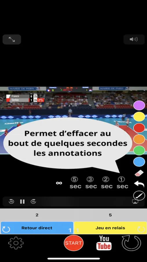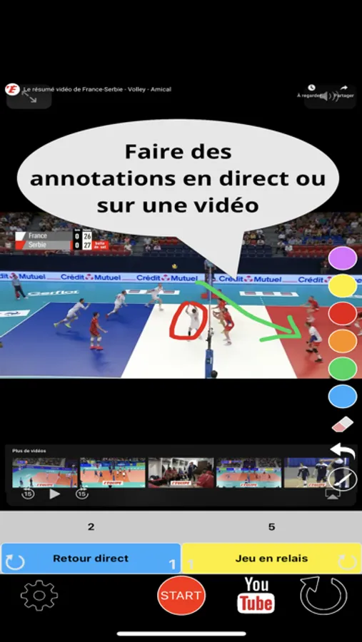 Permet de réaliser une analyse vidéo avec « étiquette » et « dessin » en DIRECT ou sur une vidéo déjà enregistrée (Galerie vidéo ou YouTube)