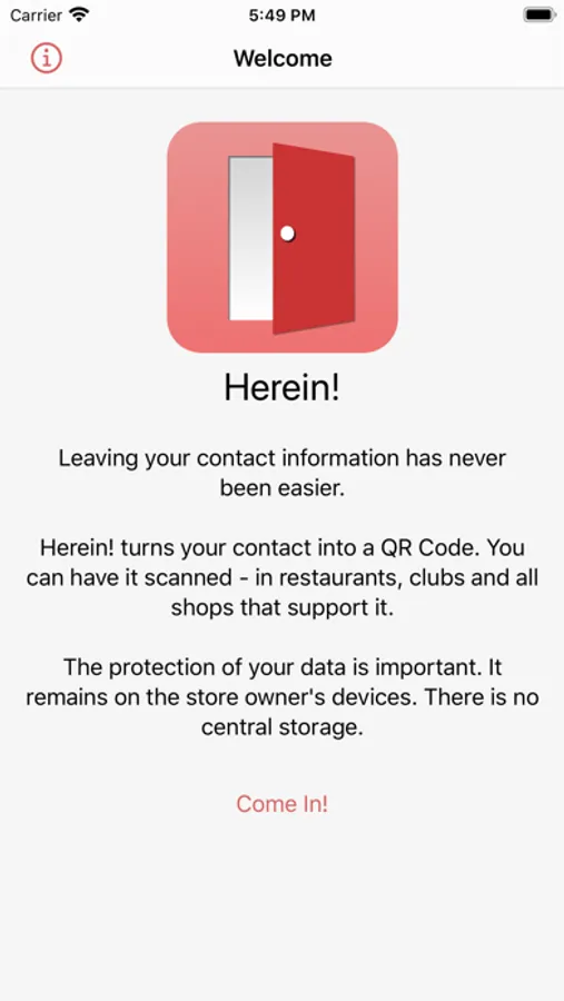 Herein! turns your contact into a QR Code. You can have it scanned - in restaurants, clubs and all shops that support it.