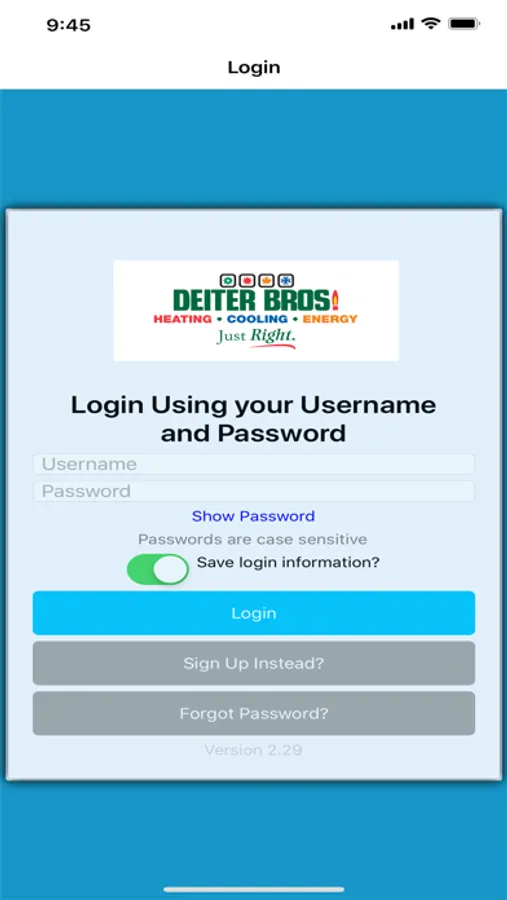 This is the Deiter Bros App. The app allows users to view information about their account, order fuel, request service, and make payments on their account using their device. Customers create a login for this app by using an account number that they obtain from registering on our website. There is no cost or fees to register and use this app.