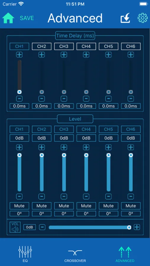 EZ amp APP is used to tune amplifiers with built-in interactive audio signal processor. It works like a remote control offering complete control for a single amplifier or multiple amplifiers such as: 31 band EQ with selectable frequency and Q, 6/12/24/48 dB controllable crossover with selectable filters, digital time alignment in ms/CM/inches, grouping, preset and custom settings memory, the versatility is endless. All adjustments and DSP functionality are configured via external device (Smartphone, Tablet or PC) with the EZAMP App installed.
