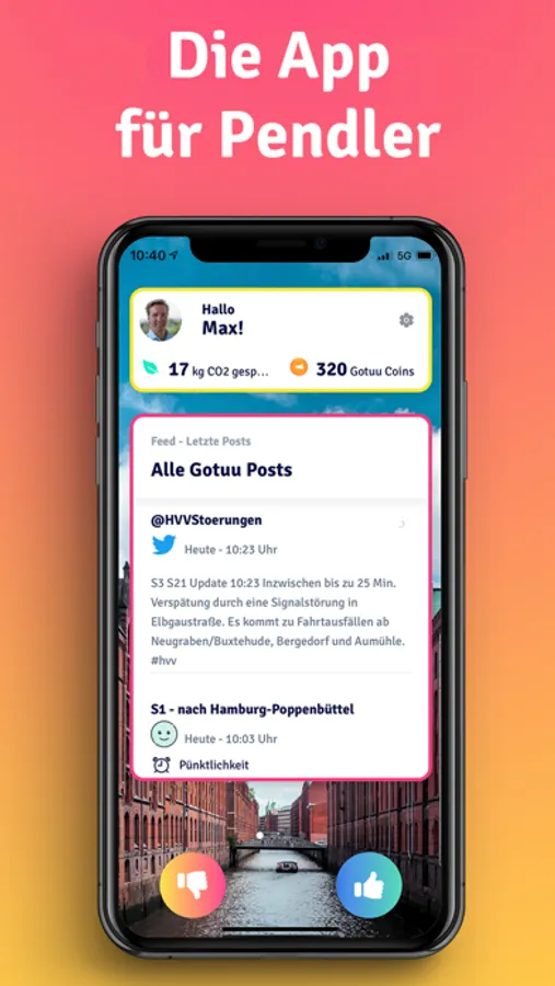 Hier bei Gotuu kannst Du posten was Dich stört oder begeistert und Dich mit anderen Fahrgästen austauschen. Mit jedem Post sammelst Du Coins und kannst diese gegen wertige Gutscheine einlösen.
