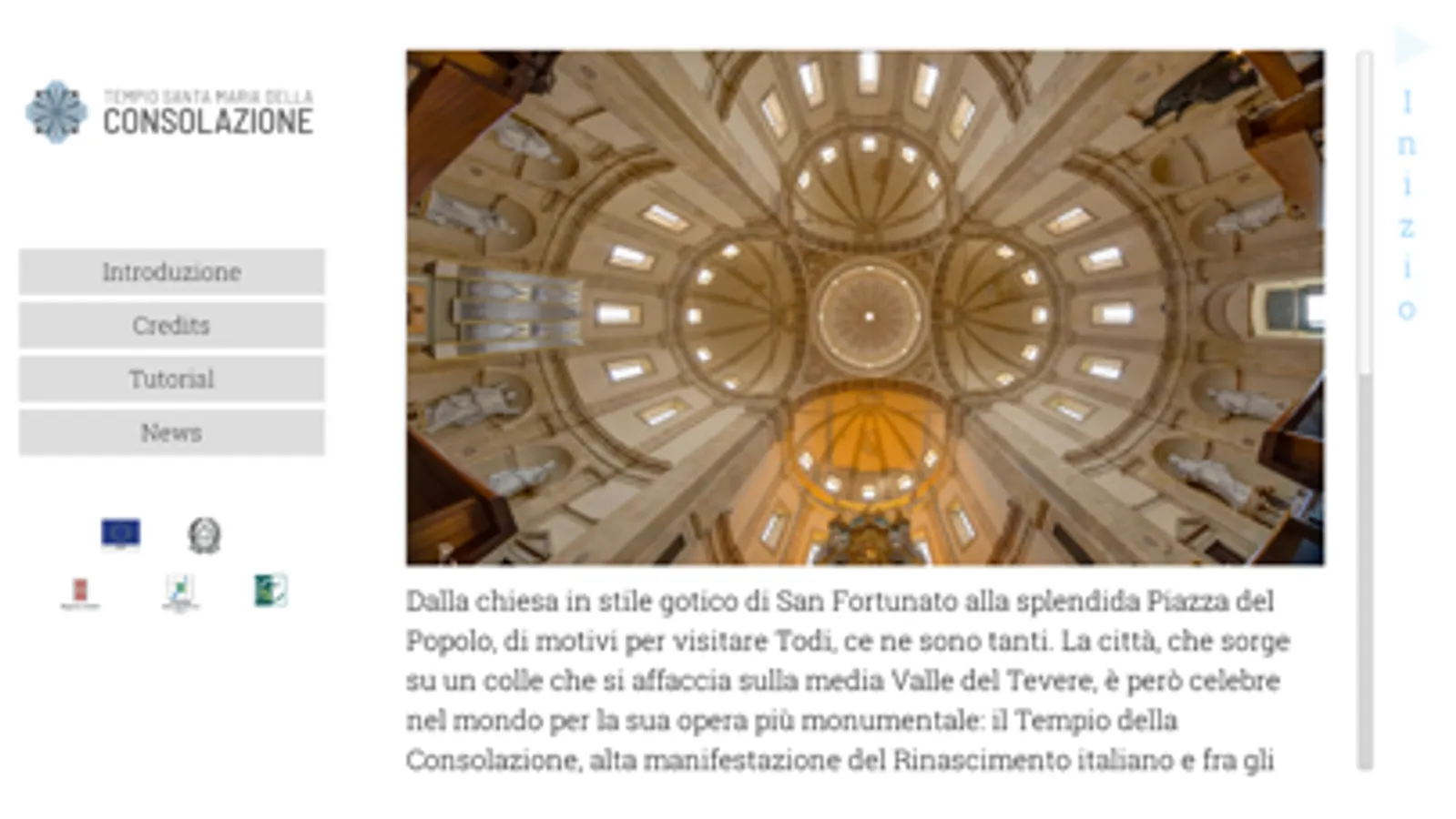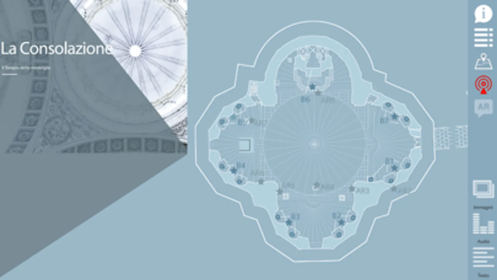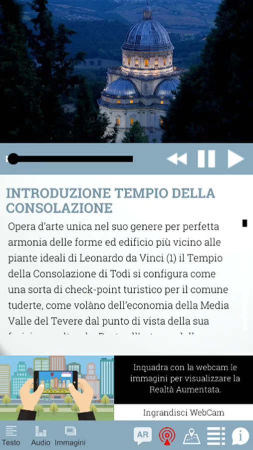 La Consolazione di Todi è una applicazione che sfrutta le funzioni dell’Augmented Reality e del Bluetooth per dare al turista una esperienza unica e coinvolgente di visita del patrimonio artistico rinascimentale del Tempio di Santa Maria della Consolazione di Todi.