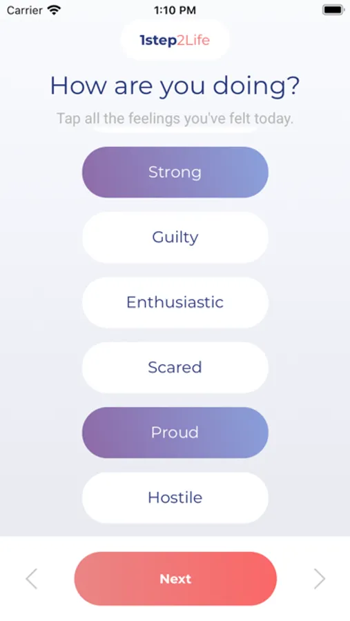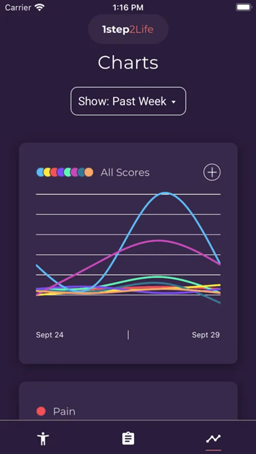 Track your mood to see how it changes with activities. And yes, you can track your pain. Set 1step2life to log pain daily, every few days, weekly, or never. You’re in control.