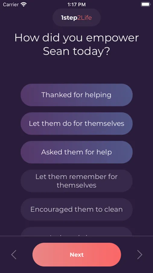 Track progress with just a touch: I ate with the family, texted a friend, washed my hair, or got to school on time. It’s there. Record and celebrate the things other people take for granted.