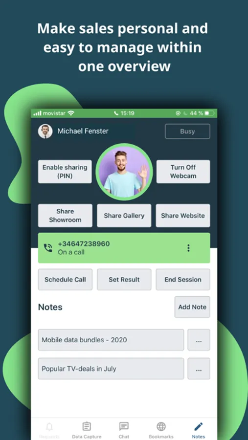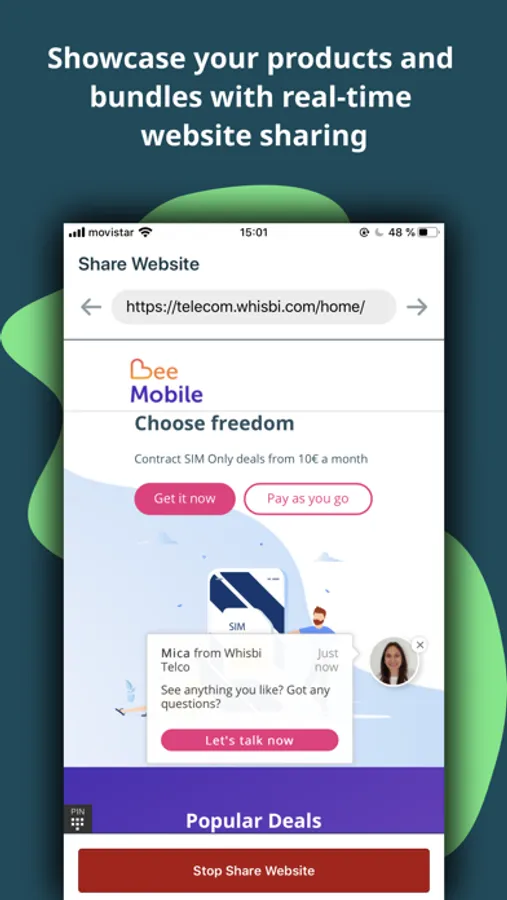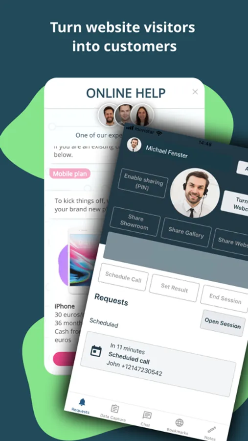 - Engage customers in real-time with by sharing your camera, websites and your showroom