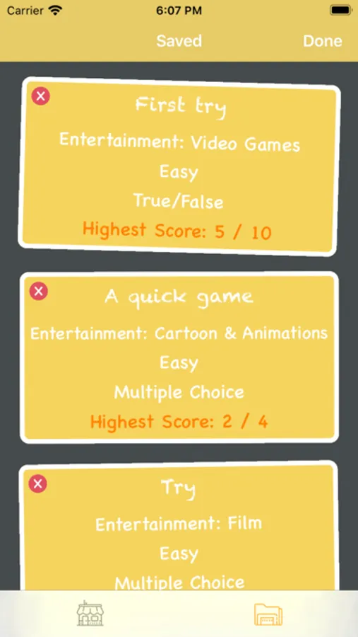 Save a game and replay it in the future to beat your highest scores. Delete games saved earlier.