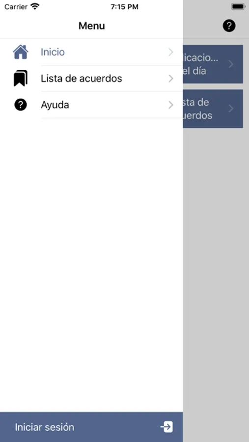 -El inicio de sesión se encuentra en la barra de menú en la parte inferior de la misma, al presionar la barra será dirigido a la pantalla para ingresar usuario y contraseña.