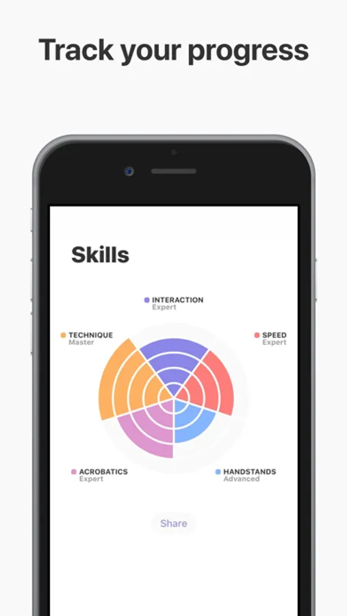 * Your current level on every capoeira aspect is shown on one page, get achievements for your progress and share them with friends.