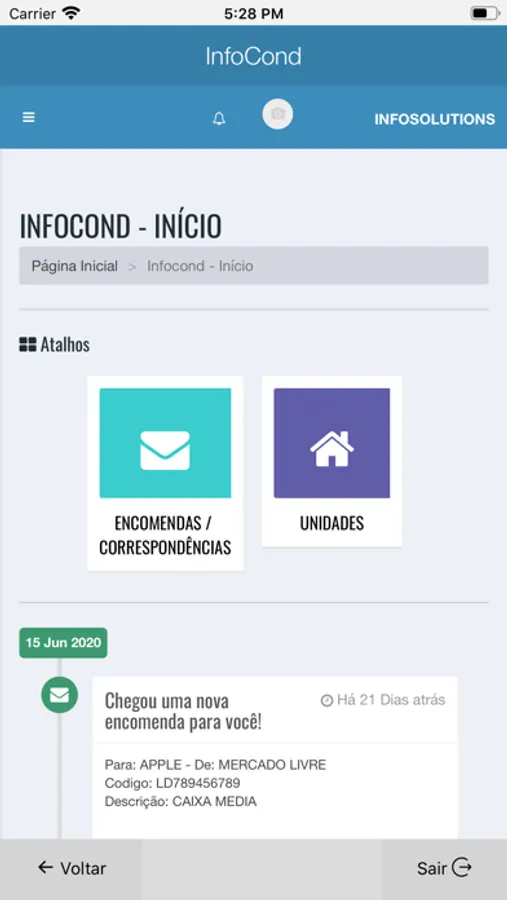 Aplicativo para comunicação com o sistema de gestão de condomínios InfoCond, app voltado para receber notificações e consultas rápidas.