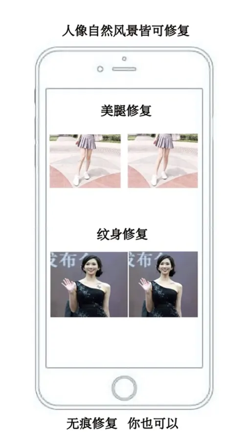 【图片去水印】:智能修复图片照片中的人物,自人风景,各种生活场景中的水印,包括文字水印,图片水印,包括人身上的纹身,疤痕,一切你不想要的都可以进行修复。一键修复无需ps。修复效果相当自然。一键P路人也不再话下。支持微博去水印,头条去水印,百度去水印,抖音去水印,微商去水印,自媒体去水印。自媒体电商从业者必备工具。