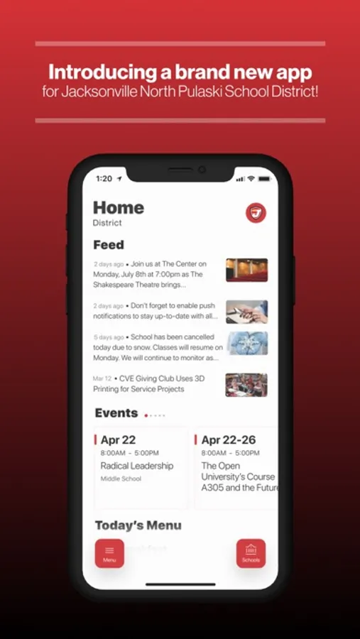The official app for Jacksonville North Pulaski, AR allows users direct access to the most recent news, announcements and event calendars. Customize the app to display information relevant to a specific campus and to receive important notifications from the district. Users may also access the directory of district faculty and staff, view dining menus, find the location of district events, contact campuses and departments, follow athletic scores and updates, and much more.