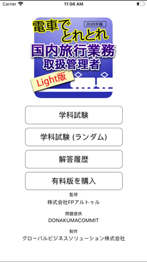 正答率をグラフ化し間違いやすい問題を視覚的に把握、弱点を集中的に復習可能最小限の労力で合格点にたどり着くための問題演習アプリです。