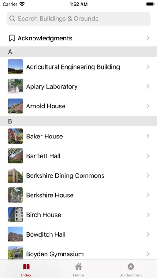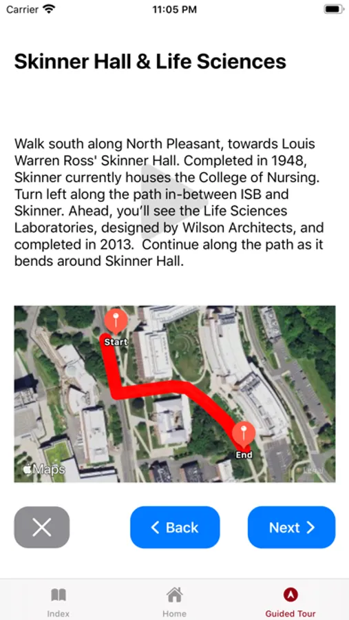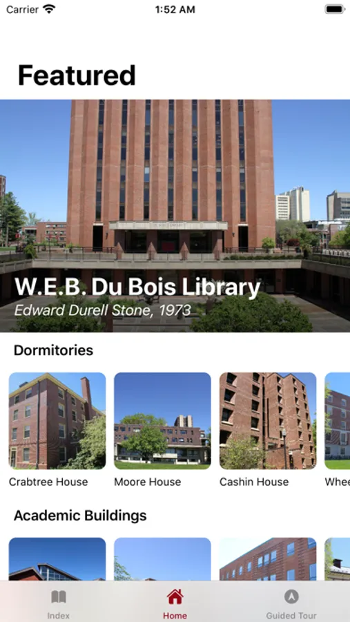 While on campus, explore the architecture with the Guided Tour, featuring 42 points of interest around campus and walking directions between them.