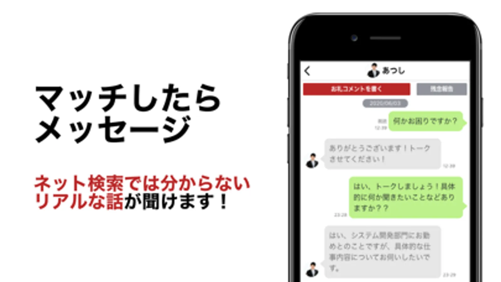5分でOB訪問・転職相談の相手が見つかる、社会人のためのOB訪問マッチングアプリ!