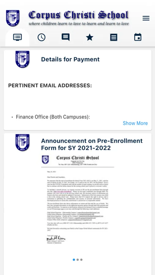 • Organized information – Common inquiries may be answered with the app. Students and parents are able to retrieve information from the respective tabs without hassle.
