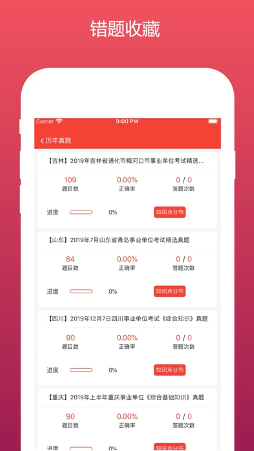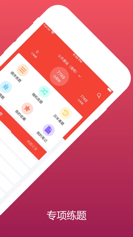 包含随机测试,专项练习,模拟考试,错题记录,还可以收藏您认为比较重要等试题,满足您的各种备考需求。