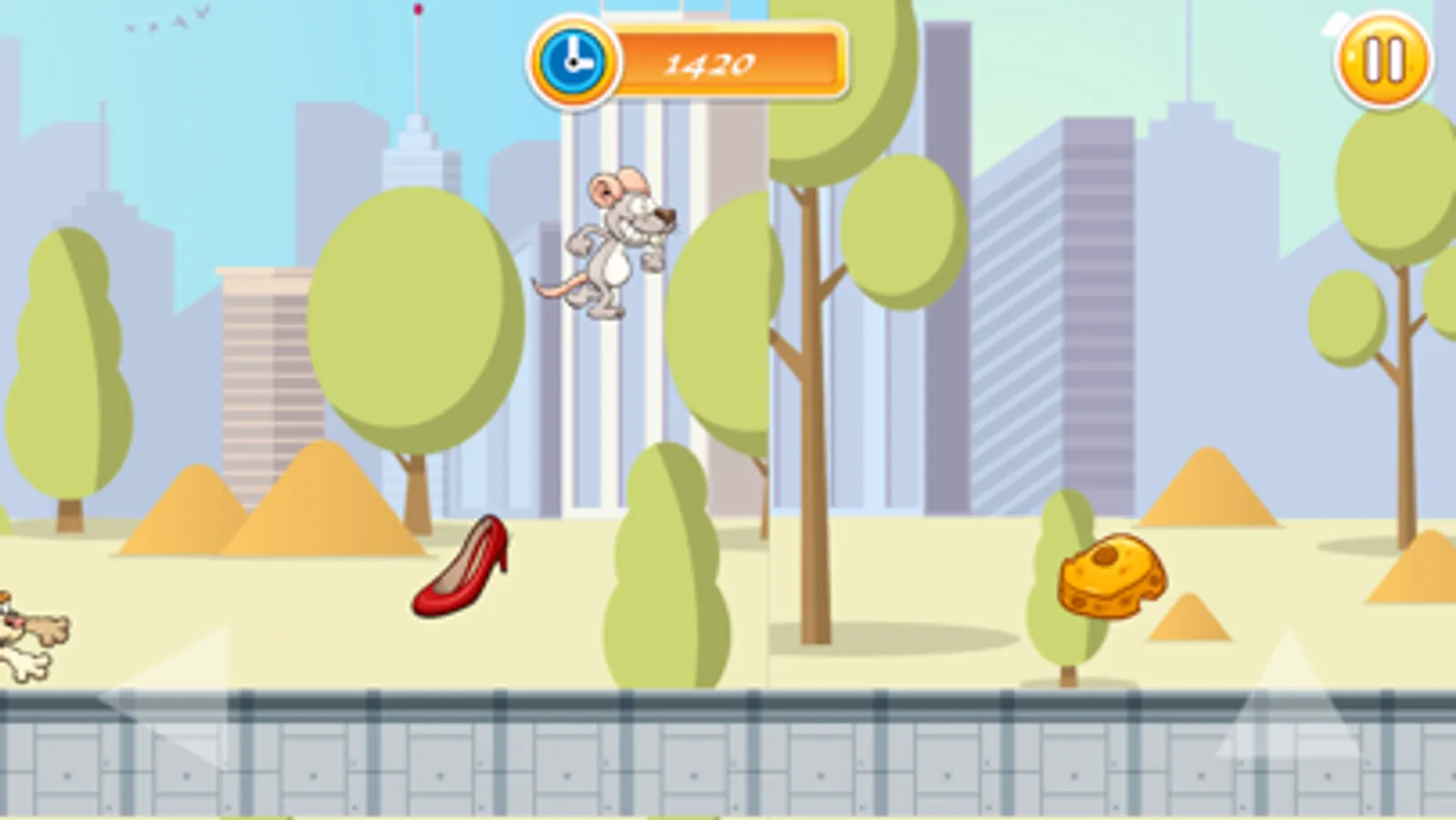 Mouse Hunt Game is a Runner Game in which There is a Cat and Old Lady Mainly. There are a lot of obstacles also. Mouse Have to avoid from being caught from the Cat and the Old Lady. The Old Lady Threw Shoes and Chappals on the mouse, we have to save mouse from hitting with any shoes. There are Fires as well which will Burn the Mouse So We have to Jump over the fire to avoid being burnt by fire.