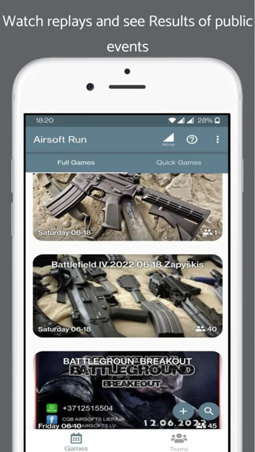 This application is suited for the use of Airsoft run event players and Admins, if you are an event manager and would like to host an Airsoft event, please visit our website and create an event in the event host panel