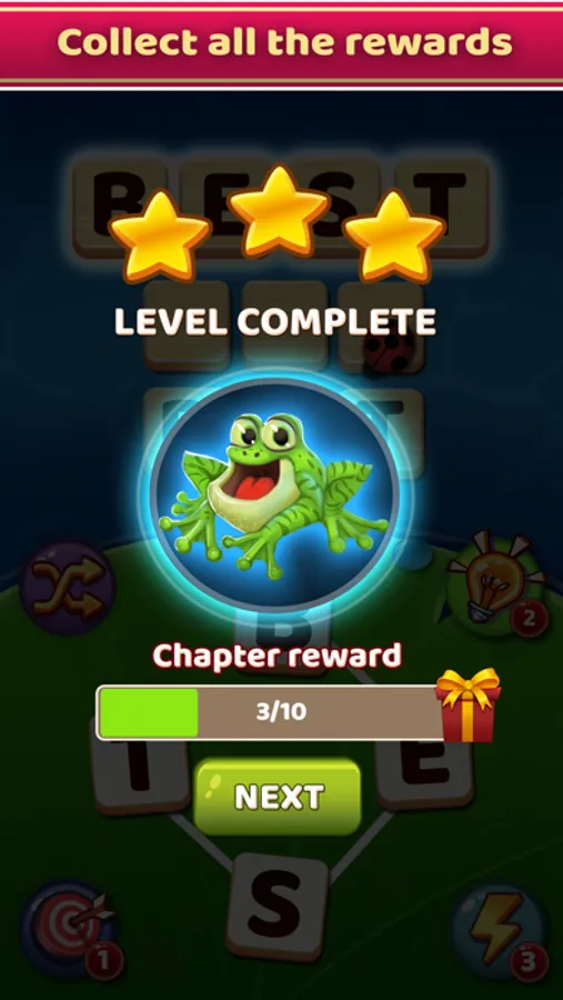 Once you fill the blocks with the right words your level is completed! There are hints and other bonuses to guide you.
